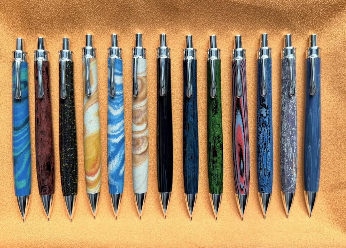 通常のラインアップにないエボナイト素材もたくさんあります。